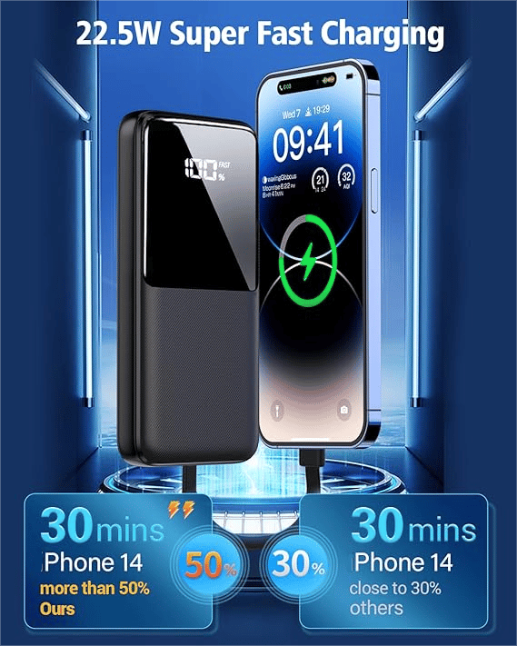 Compact and Portable Design: Slim, lightweight, and easy to carry in your bag or pocket, so you can power up your devices wherever you go.