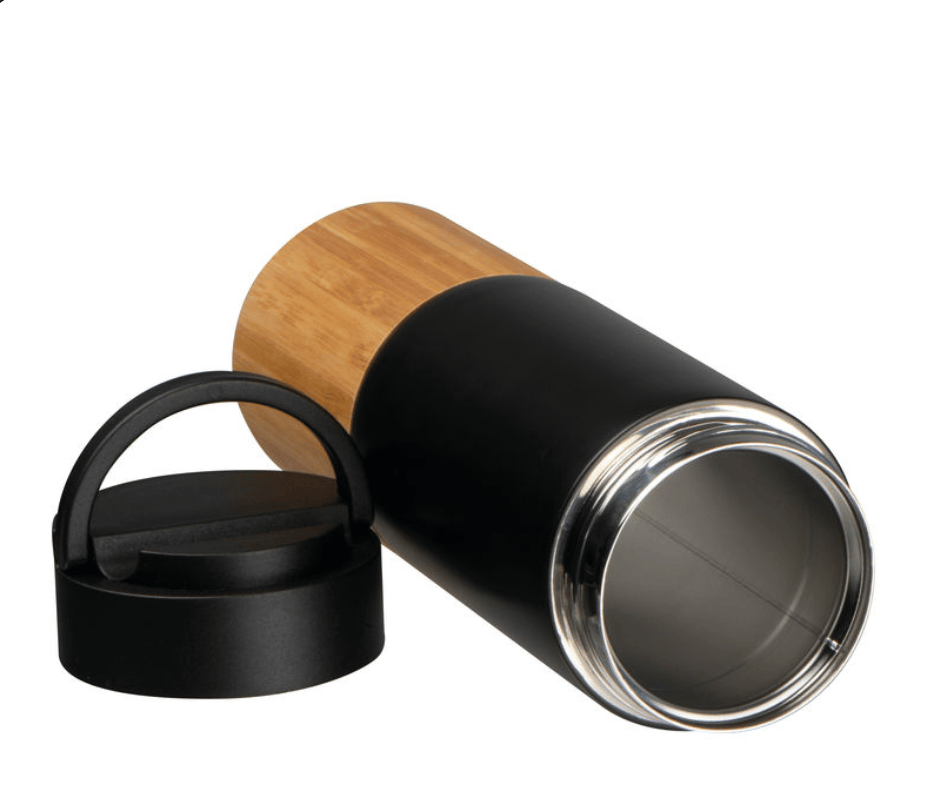 Eco Vortex Black- Stainless Steel Bamboo Water Bottle