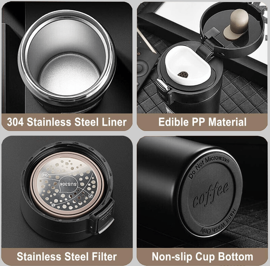 Thermal Insulation for Hot & Cold Drinks: Designed to maintain your beverage temperature for extended hours—ideal for morning coffee, tea, cold water, or sports drinks.