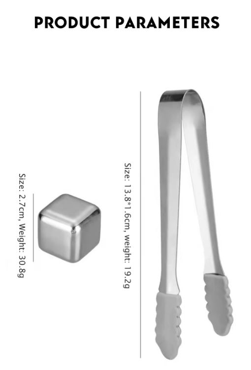 Stainless Steel 6-Piece Reusable Ice Cube Set with Tong( Set of 2 )